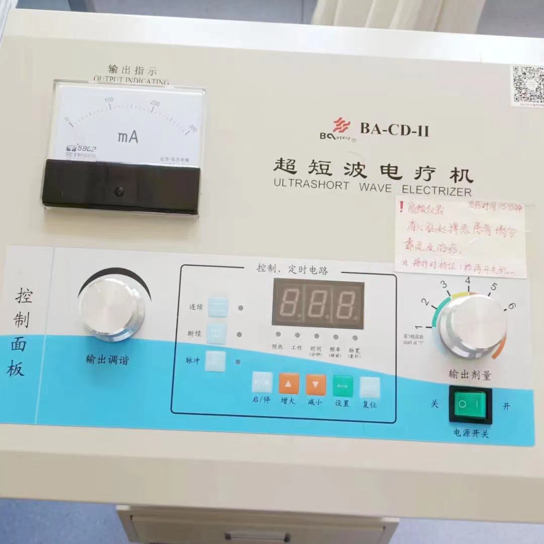 超短波治疗仪是一种传统的治疗仪器,是通过电容电极输出能量,将患部置于电极之间,在高频电场的作用下,通过温热的良性刺激,有效促进局部血液循环,改善组织营养状态,加强组织机体的新陈代谢,降低感觉神经的兴奋性,从而达到抑菌、消炎、止痛、解痉,增强机体免疫力的治疗目的;配合针灸、按摩等效果更佳。