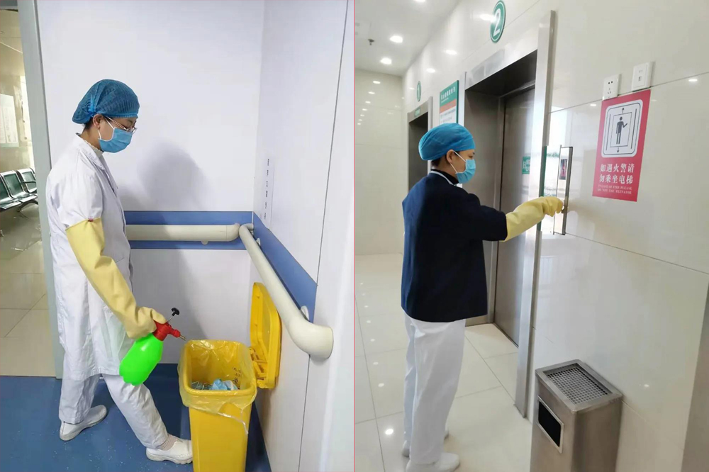 保证蜜桃视频 重点部门消毒工作落实到位,也是防控疫情的关键。护理部5名工作人员分工协作,每天不定时到发热门诊、留观室、隔离病房、病区、相关科室、食堂、电梯间等重点区域现场指导、监督消毒防护执行情况,对每一个流程、每一个环节根据管理要求和实际情况反复改进、不断完善,确保就诊人员、医护人员在安全的环境中放心就诊、安心工作。