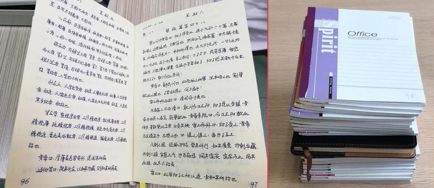 科室全体医护人员每天都要写一篇读书笔记,左图为孙立新的读书笔记