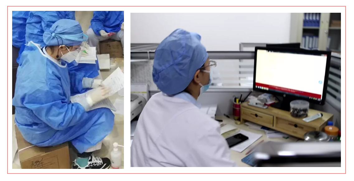 护理部李景:配合护理部副主任李静发放物资、协调人员;接收、核对病毒采集管;只要有时间就抽空帮着录信息,与此同时,积极要求上前线,参加现场采样工作。