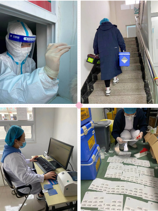 春节前后,随着返乡人员和复工复产人员增多,蜜桃视频 核酸检测任务急剧增加,每天要检测1千人左右,最高峰时,前来检测人员达到3000余人。打印条码,核酸采集,信息录入,送检标本,核对受检人员信息,数据上报……门急诊专门抽调出6名“美小护”,轮班迎战核酸检测任务。虽然检测高峰时,蜜桃视频 统一部署增设了5个核酸采样点,并从各科室抽调精英护士前来“助战”采集,但门急诊的护理人员依然非常忙碌。完成一天的采集工作,还要上报当天的核酸采集数据,白天工作忙,数据核对整理不完,晚上就带回家继续核对整理。刘晓敏孩子才1岁多,为了不影响工作,就把孩子交给老人带,还动员家人帮着一起录。由于劳累,马倩和马蕾这两个“女汉子”,一个感冒了,一个肩周炎复发,她们居然没请一天假,硬是抗了下来。大家常常加班到凌晨二三点钟,第二天7点半,又准时出现在岗位上,穿戴好防护服、护目镜、口罩、手套,开始一天的繁忙工作。