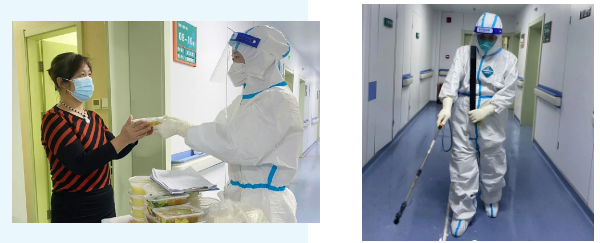火车跑得快,全靠车头带。科主任赵勇军发挥先锋模范作用,冲锋在前。除了肩负全科患者的诊疗救治重任,他还担负起每天的消杀工作,当上了保洁员,为病区消杀,扫地、擦地、收拾桌子……努力保证病区清洁安全。忙碌之余,他还不忘抽出时间,协助护理人员为患者订餐、送餐。