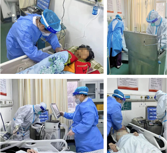 冒着被病毒感染的风险,顶着超出日常工作量数倍的压力,急诊科医护团队日夜奋战在一线。抢救室里,大多是高龄老人,合并慢性基础病。有的因感染肺炎,血氧饱和度低于正常数值,需要进行高流量氧疗;有的合并出现昏迷、休克、呼吸衰竭、心衰,甚至意识不清,需要插管、上呼吸机;患者流动性强,病情变化快,对医护人员的快速处置能力也有更高的要求。他们与病魔激战,与时间赛跑,争分夺秒,不舍昼夜。