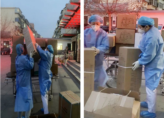 病毒无情,人间有爱。在这场战“疫”中,护理部负责全院护理工作的调度和全院重点区域消杀、物资转运等工作。从凌晨受命,组织护理团队紧急集结,支援一线抗疫;到将隔离病区患者标本及时运送到检验科;再到把一箱箱防护服、防护口罩、消毒物资转运到临床一线;从药房把药品及时准确转运到各病区……每一天,每一刻,护理部工作人员都在马不停蹄忙碌着,只争朝夕,无怨无悔。