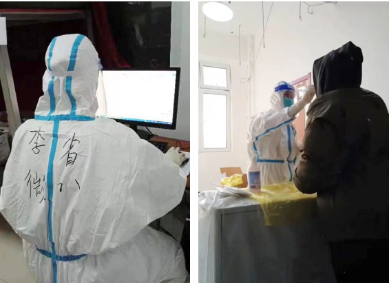 护理部科员康玲玲受命去病区支援,照顾“无陪护”患者,她穿上“大白”,认真做好护理工作,圆满完成支援任务。护理部科员李微参加支援方舱“战队”,负责督促团队成员的疫情防护,确保工作顺利进行。