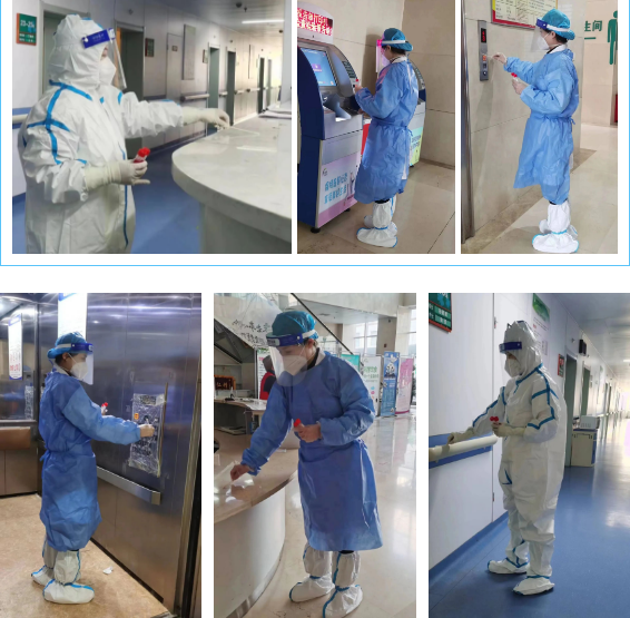 在疫情防控的最前沿,面对风险极高的发热患者,总能看到院感人的逆行背影,看到她们那坚定执着的双眼。为了保障医疗工作正常进行,她们深入隔离病房和发热门诊完成核酸环境采样,紧盯日常清洁消毒,理顺终末清洁消杀流程,规范医疗废物转运,环环把关,每一个细节都不放过。