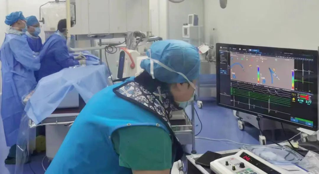 经综合评估后,副院长、心内二科主任索云锡带领团队为刘先生做了心脏射频消融术,通过股静脉途径,于右室流出道前间隔标测到理想靶点,通过射频能源,准确对心脏内异常心律的起源点进行消融,手术过程顺利。在医护人员的精心呵护下,刘先生的心终于不再“乱跳”了。