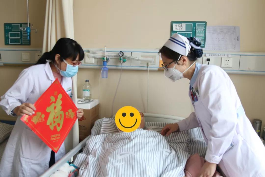 送福到床头,爱字满心田。除夕,神经内科医护人员为患者送“福”,祝愿他们早日康复,与家人团聚。
