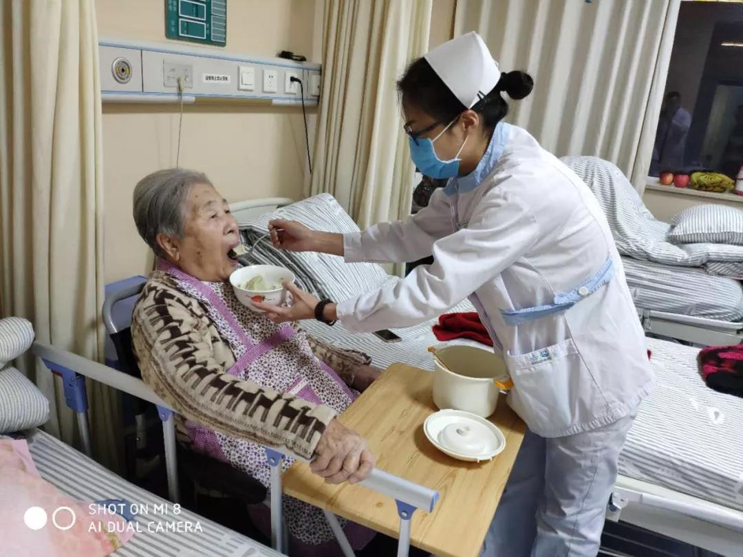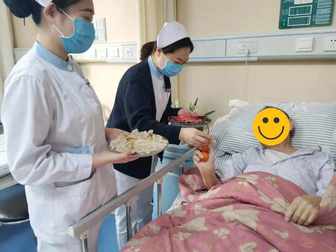 “奶奶,我喂您吃!”骨一科医护人员从食堂打回饺子,喂到住院老人口中