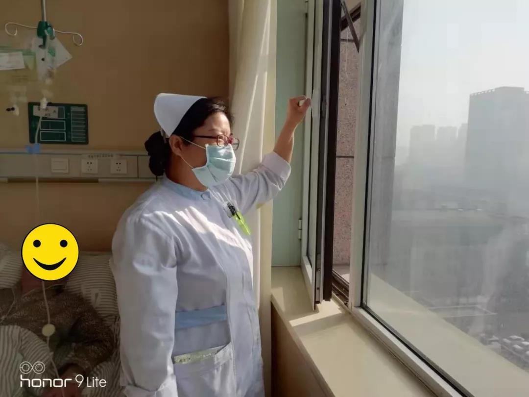 病区每天定时进行紫外线消毒,中午天气好的时候,护理人员还会走到每间病房开窗通风