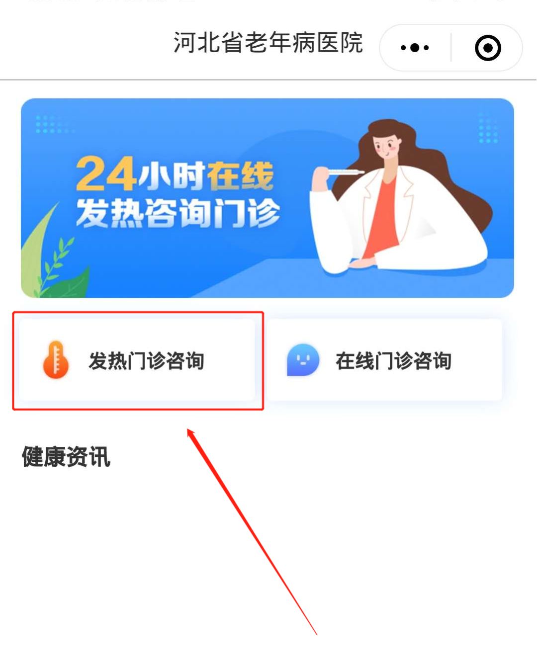 第二步:点击菜单栏【发热门诊】,进入“发热门诊咨询”蜜桃视频;