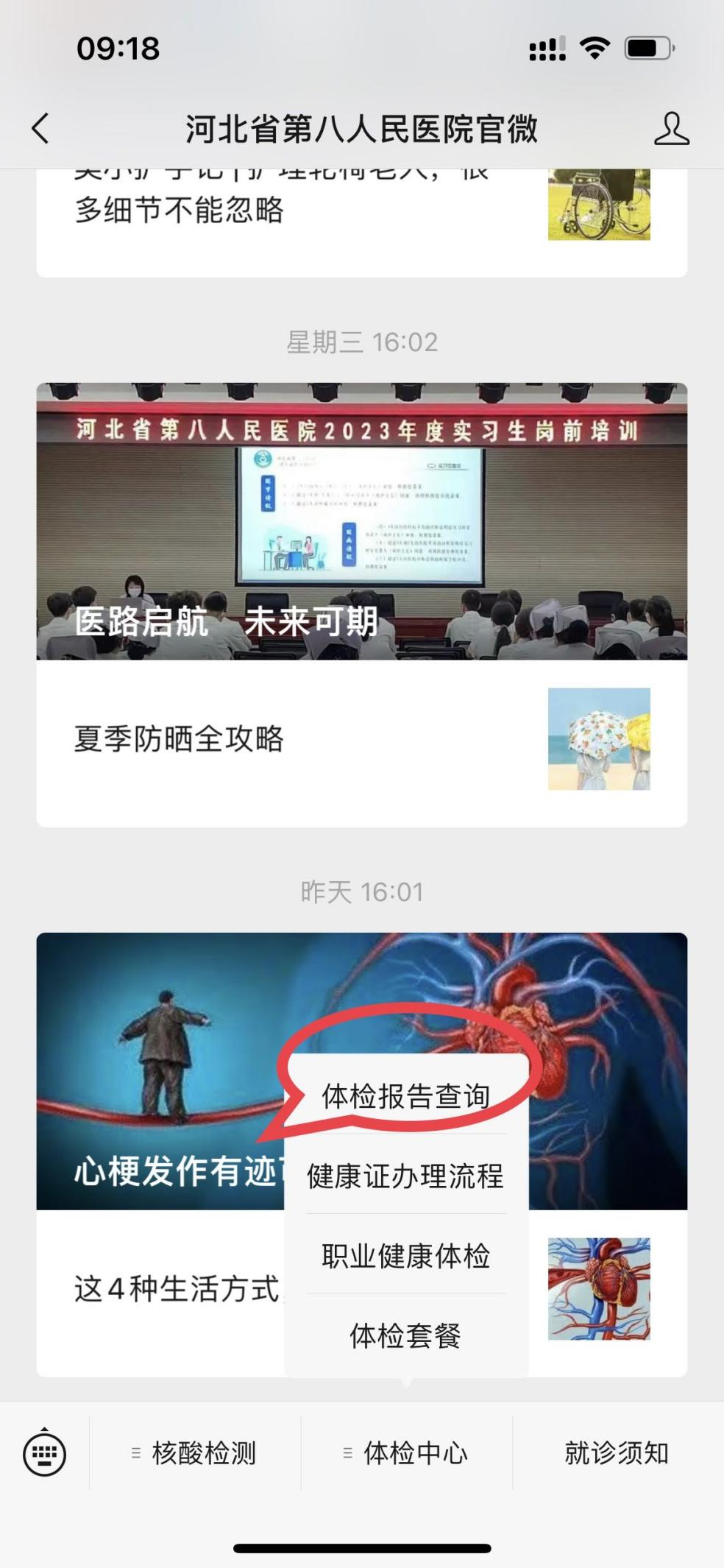 1.关注“蜜桃视频 官微”,体检完成收到短信提示后,可在公众号读取电子报告。