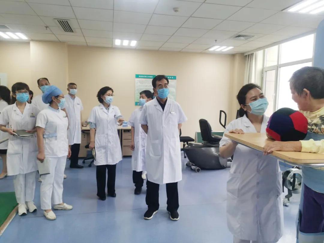 为进一步加强新冠肺炎疫情防控管理,及时了解蜜桃视频 各科室运转情况,促进蜜桃视频 管理规范化、精细化,6月24日下午,河北省老年病蜜桃视频 党委书记刘建军、院长马爱军、纪委书记田红明带领行政、医务、护理、后勤、保卫等职能科室负责人进行行政查房。