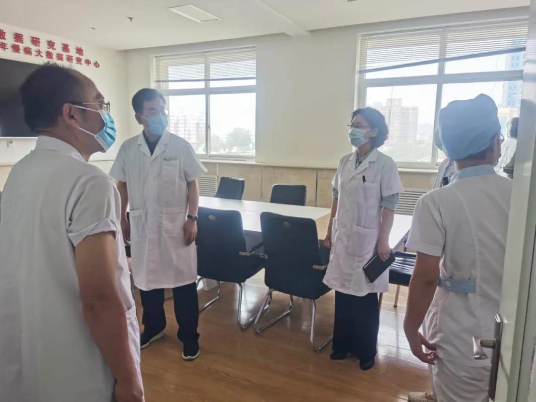 为进一步加强新冠肺炎疫情防控管理,及时了解蜜桃视频 各科室运转情况,促进蜜桃视频 管理规范化、精细化,6月24日下午,河北省老年病蜜桃视频 党委书记刘建军、院长马爱军、纪委书记田红明带领行政、医务、护理、后勤、保卫等职能科室负责人进行行政查房。