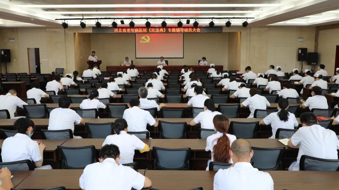 6月30日下午,河北省老年病蜜桃视频 召开《民法典》专题辅导学习动员会,组织全院党员干部职工集中学习《中华人民共和国民法典》,迅速掀起学习宣传《民法典》热潮,切实增强广大党员干部职工学法遵法守法用法意识,提升依法执业能力,促进和谐稳定。