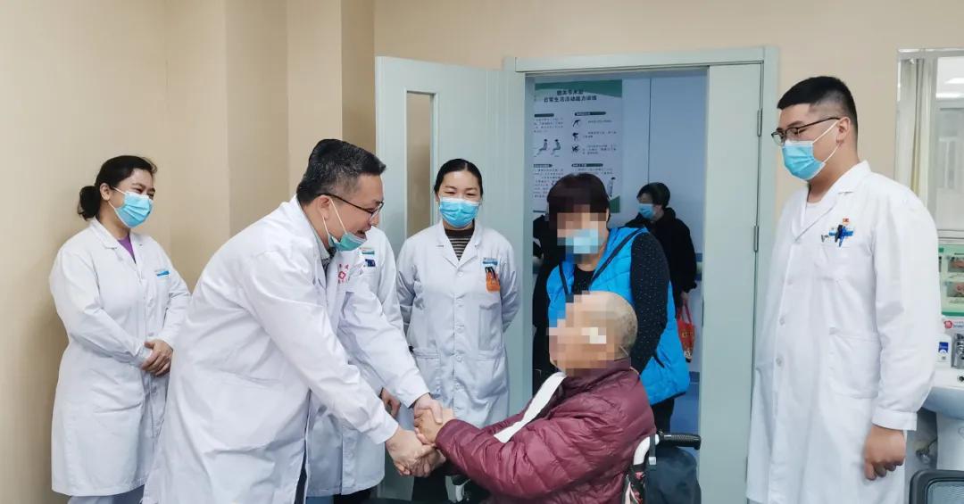 苏国栋的耐心讲解,让田先生有了更强烈的康复意愿,他紧紧握着苏国栋的手,表达着愿意配合康复治疗师继续努力康复训练的决心。