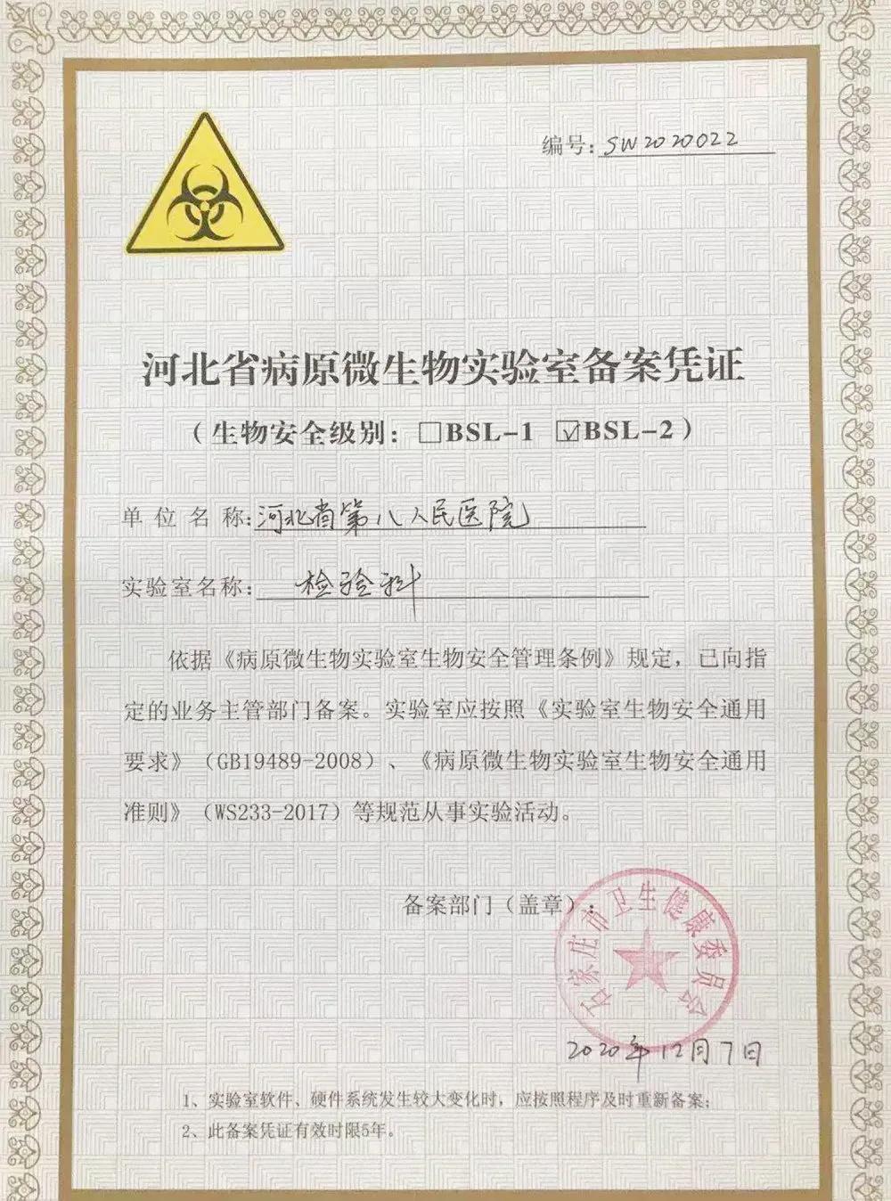 近日,蜜桃视频-麻豆蜜桃 检验科二级生物安全实验室顺利通过备案审核,标志着蜜桃视频 承检能力得到进一步提升。