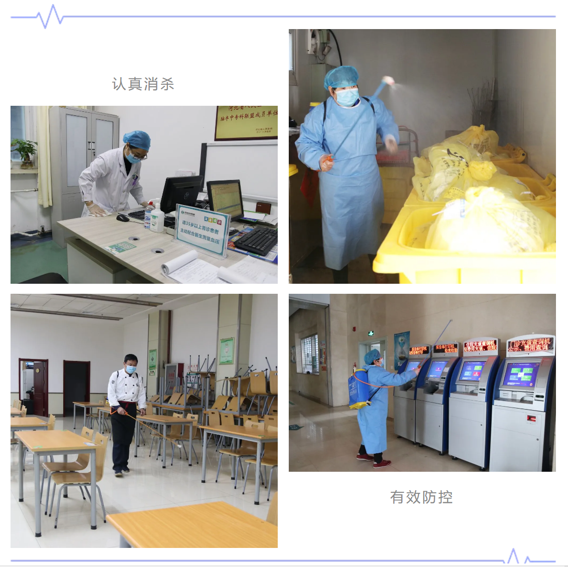 对人员密集、人流量大的重点防控区域及高频次接触物体表面,每日进行多次消杀,落实环境监测,做好追溯管理,严格医废管理,确保全院卫生安全。