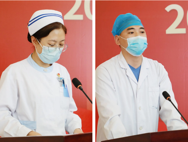 荣誉是奋斗的里程碑,更是前进道路上的原动力。优秀护士长代表曹玉娇、优秀护士代表高策分享了自己的工作体会。他们用质朴无华的语言讲述着护理工作者的责任与使命,以“小我”携“大爱”,以“仁术”筑“仁心”,用无悔青春书写着白衣天使的铮铮誓言。
