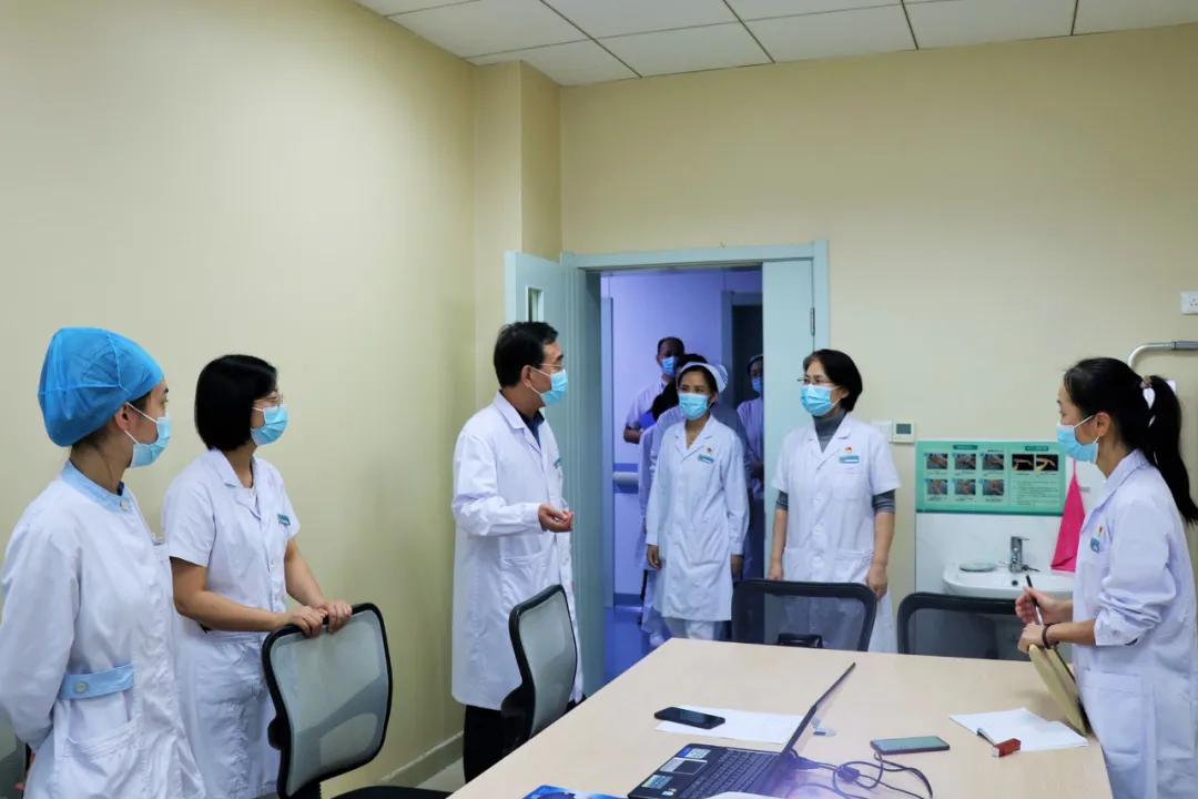 持续做好疫情常态化防控工作,确保“十一”长假期间蜜桃视频 各部门工作平稳有序开展。10月4日上午,绵绵秋雨中,蜜桃视频-麻豆蜜桃 党委书记刘建军、院长马爱军带领行政、医务、护理、后勤、保卫等职能科室负责人开展行政大查房。
