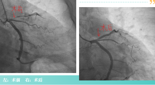 冠脉造影术中发现患者前降支血管狭窄99%,且冠脉内形成大量新发血栓。术中应用冠脉内尿激酶溶栓术、球囊扩张成形术及冠脉支架置入术,顺利为患者开通了闭塞的前降支血管,挽救了濒临坏死的心肌,避免进一步出现严重心力衰竭风险,成功挽救了患者的生命。