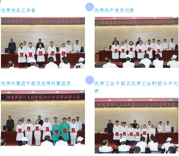 会议对2022年度先进科室和先进个人,2022年度先进党支部、优秀党务工作者、优秀共产党员,2022年度优秀共青团干部及优秀共青团员,2022年度优秀工会干部和优秀工会积极分子进行了表彰。