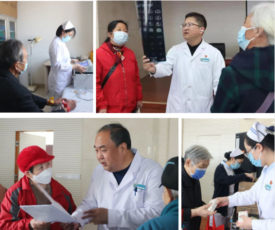 下左:解疑释惑 下右:向参加活动的老人赠送礼品
