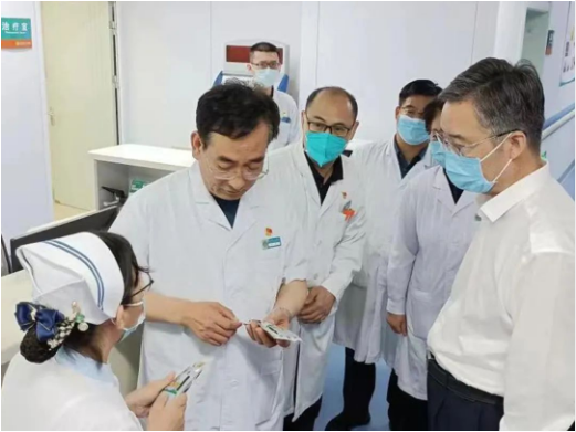 贯彻落实习近平总书记重要讲话和重要指示精神,扎实有效推动主题教育走深走实。5月17日下午,河北省卫生健康委党组书记、主任王现坤,委党组成员、副主任马哲,委党组成员、副主任、省疾控局局长孙国安一行冒雨到蜜桃视频 进行工作调研。蜜桃视频 党委书记刘建军、院长马爱军及院领导班子成员陪同调研。