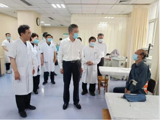 调研团一行还深入蜜桃视频 特色科室和“无陪护”病区慰问一线医护人员,探望在院患者,了解他们的工作生活和就医体验。