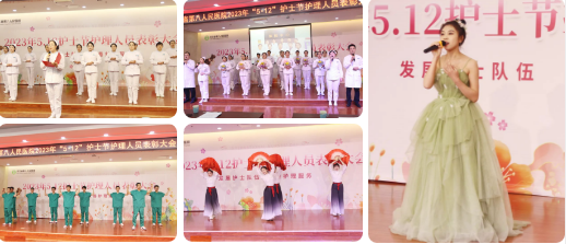 上左:护理人员入职宣誓 上中:合唱《明天会更好》