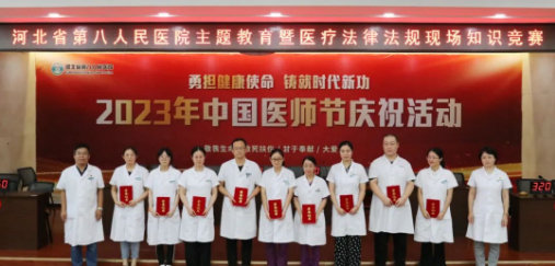 为迎接第六个中国医师节到来,进一步推动学习贯彻习近平新时代中国特色社会主义思想主题教育走深走实,持续打造高素质医师队伍,推动蜜桃视频 事业蓬勃发展,蜜桃视频 决定在全院开展“‘勇担健康使命,铸就时代新功’主题教育暨医疗法律法规知识竞赛”活动,以《主题教育应知应会》《中华人民共和国医师法》《河北省医疗纠纷预防和处理条例》《河北省医疗质量安全核心制度实施细则(试行)2018年》等为主要考核内容,精心设计竞赛题库,鼓励全院医师开展形式多样的培训学习,以赛促学、以学促医。经各科推选,来自全院临床、医技等科室的17支队伍51名医务人员参加现场竞赛。