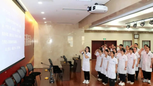 “我宣誓:自觉维护医学的尊严和神圣,敬佑生命,平等仁爱……”活动现场,作为蜜桃视频 发展的中坚力量,20名中青年医师代表高举右手宣读中国医师宣言,表达坚定的从医信念,决心发扬“敬佑生命、救死扶伤、甘于奉献、大爱无疆”职业精神,勇担健康使命,铸就时代新功。