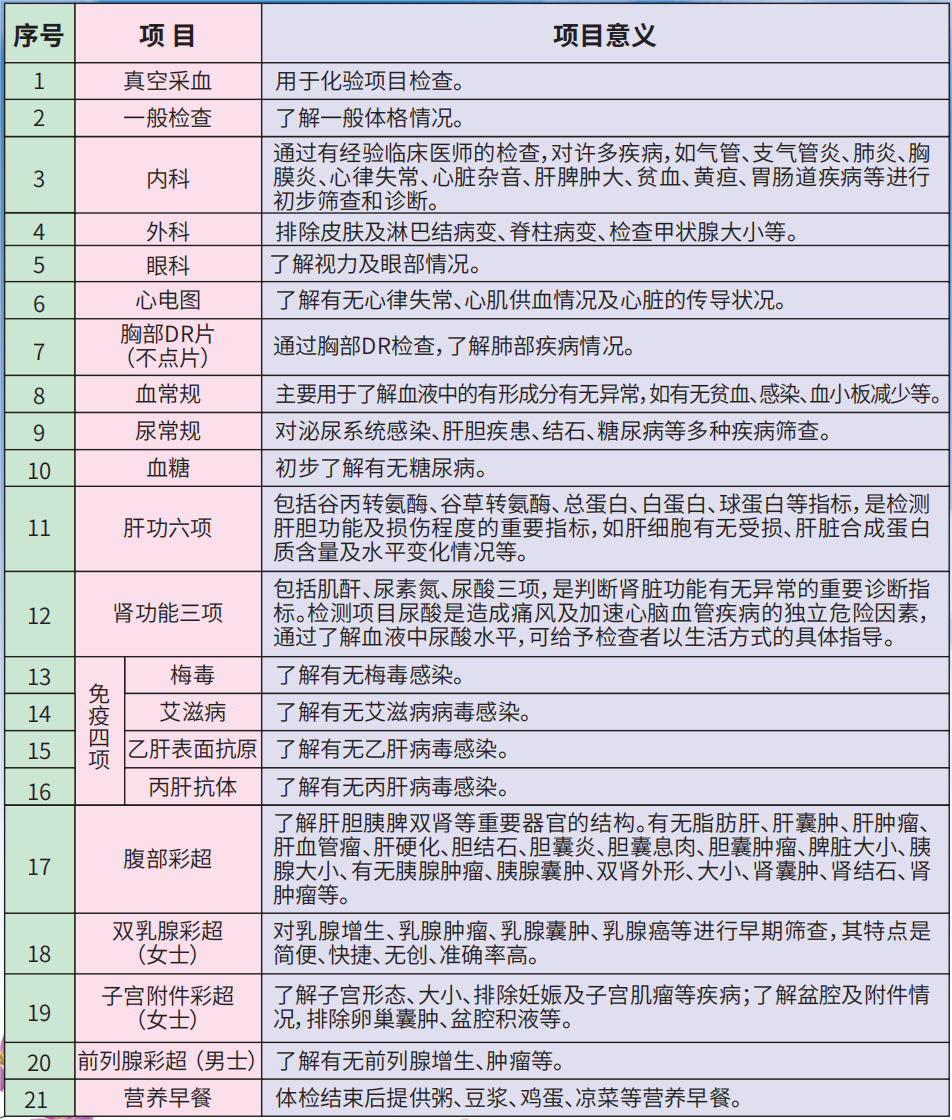 用于准新娘、新郎婚前检查。体检项目包括常规体格检查、生殖系统检查、传染性疾病检查等。拥有健康身体,保障婚姻家庭的幸福美满。