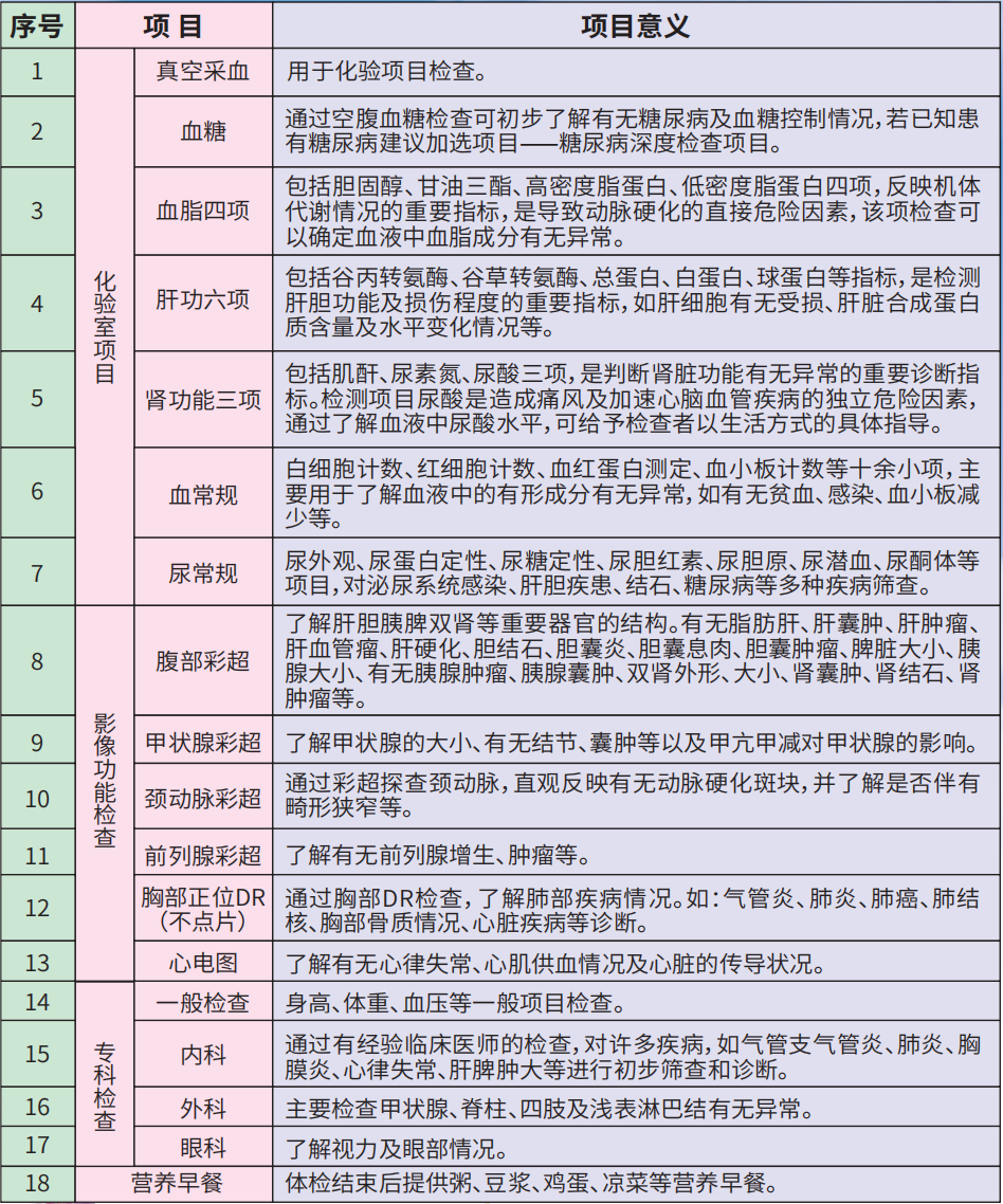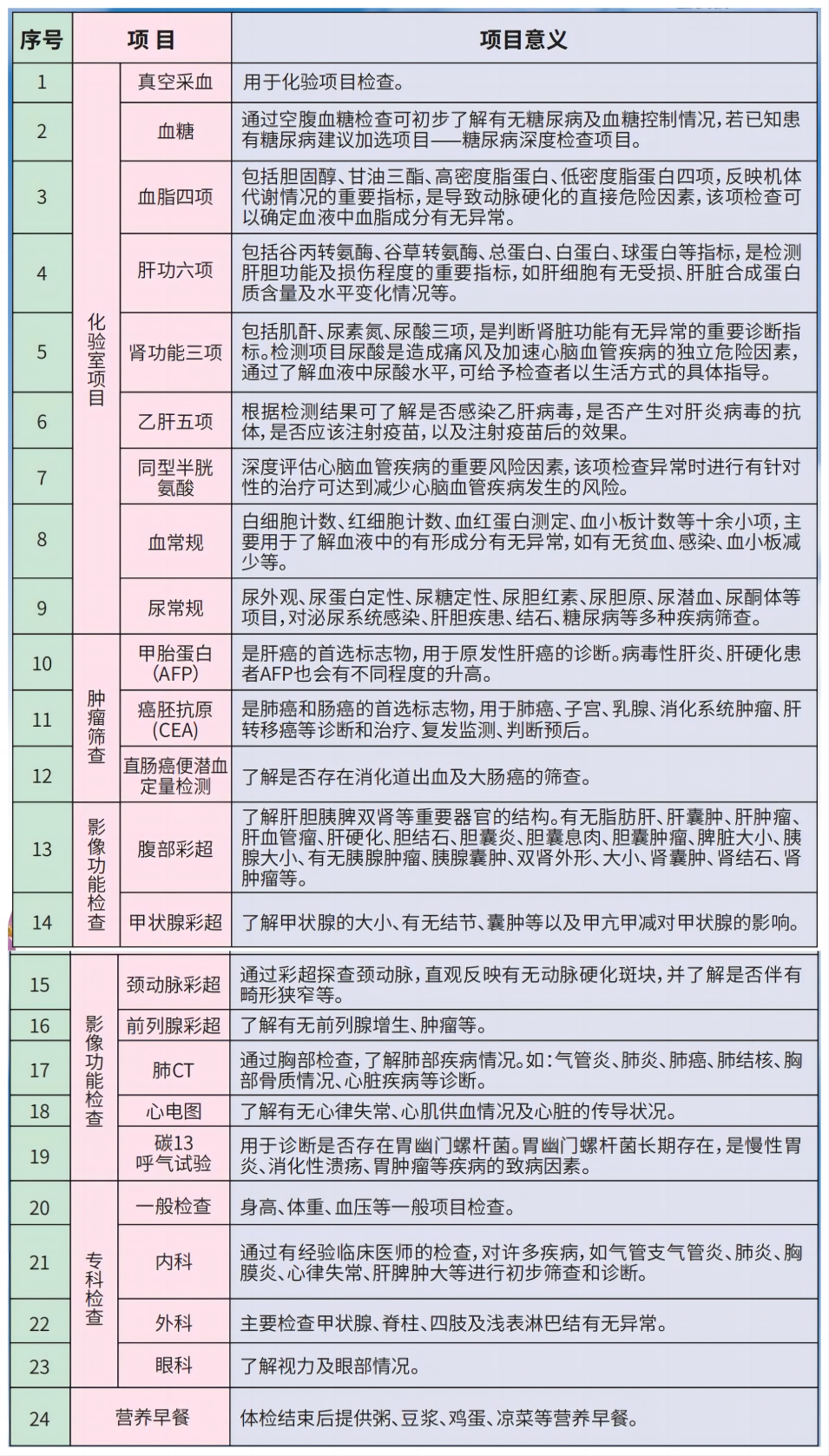 适用于30岁-55岁中年男士。中华民族的传统文化赋予了男士更多的社会责任和家庭责任,这个年龄段的男士是社会和家庭的中坚力量,身体健康问题也容易逐渐积累而导致疾病的发生。本套餐着重重要脏器功能方面检查。