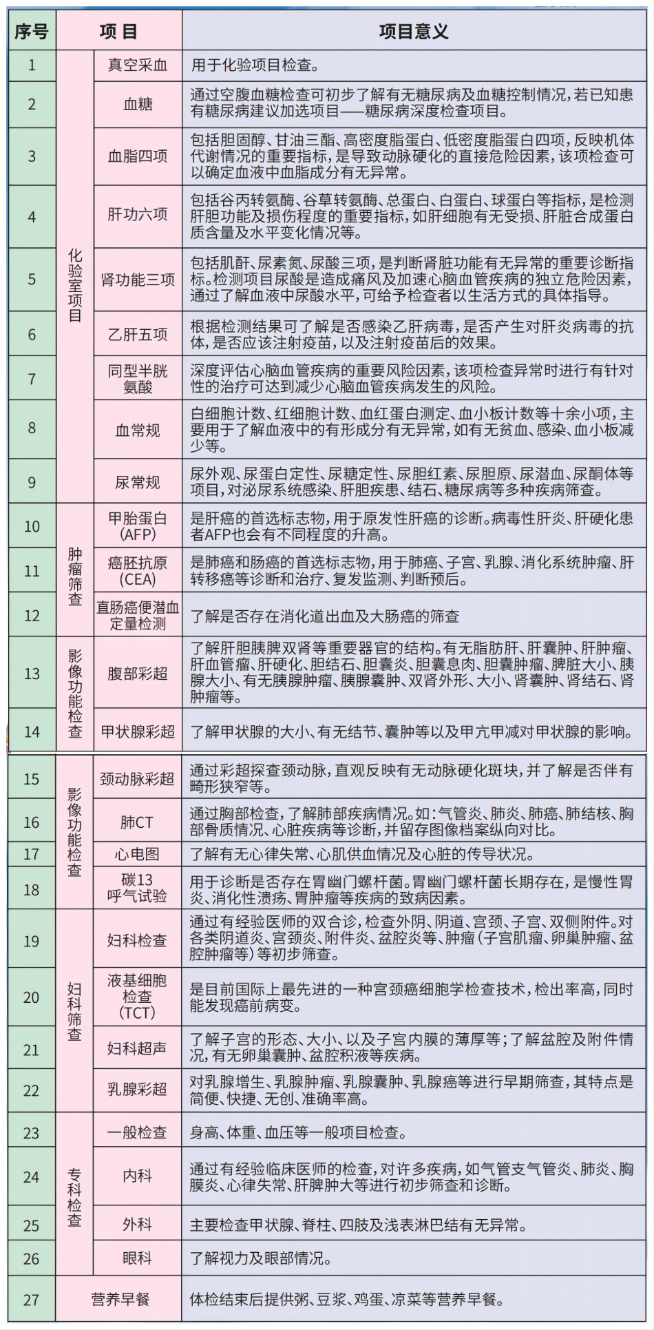 适用于30-45岁中年女士。本套餐在幸福女士套餐的基础上,增加心脑血管疾病风险预测及肿瘤的早期初步筛查。