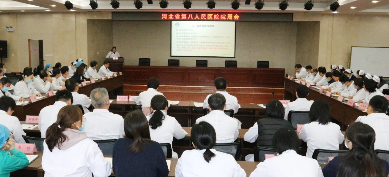 蜜桃视频 医务处、三级办、护理部、医保办、药剂科、财务处和保卫处分别通报近期工作,院领导王杰超、栗爱珍、索云锡就通报内容现场点评,并对下一步工作进行安排部署。