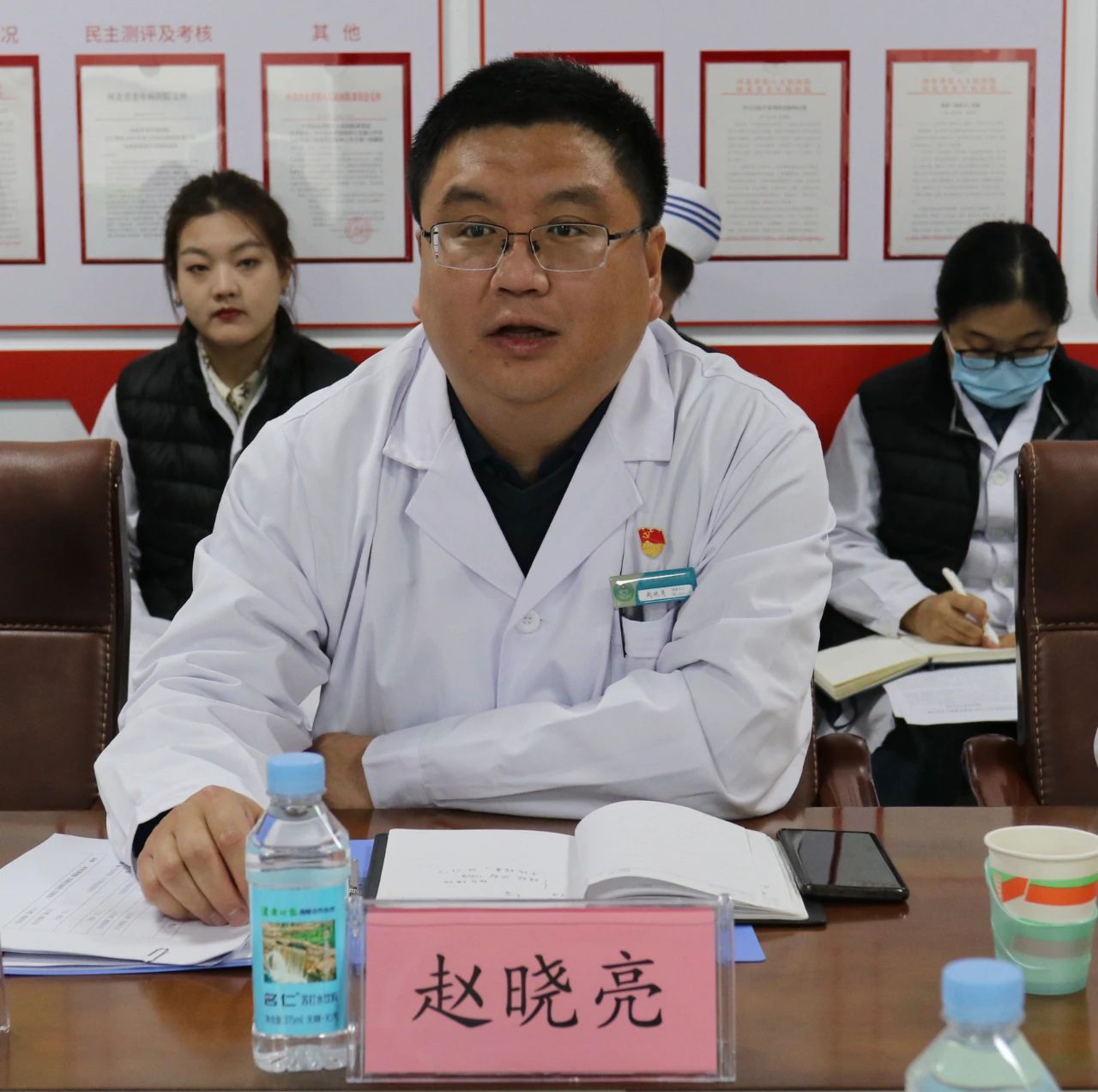副院长王杰超就蜜桃视频 的基本情况和医疗质量管理、依法执业、三级职业病蜜桃视频 建设等方面情况作简要介绍。