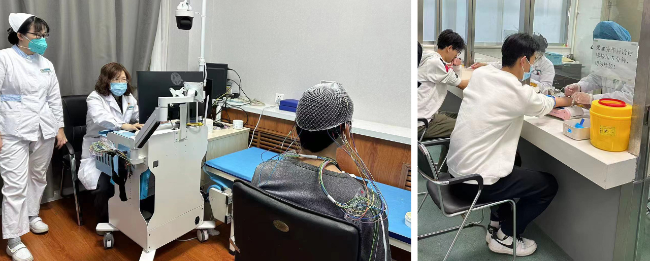 左:脑电图检查