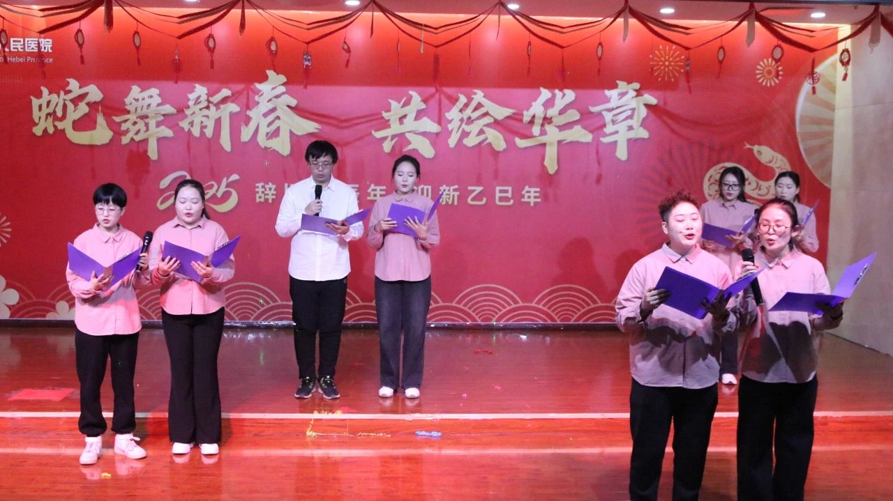 凯歌高奏辞旧岁,春风得意迎新年!为充分展示全院上下朝气蓬勃,凝心聚力的精神风貌,抒发新一年砥砺前行、锐意进取的澎湃之情。1月22日下午,蜜桃视频 举办以“蛇舞新春,共绘华章”为主题的新春联欢会。蜜桃视频 领导班子及各临床医技科室、行政后勤等欢聚一堂,共同欢庆这一美好时刻。