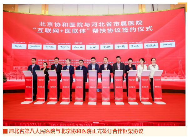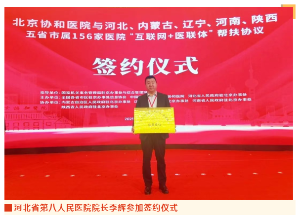 在医疗事业蓬勃发展的新时代,为进一步促进优质医疗资源的扩容下沉与区域均衡布局,提升基层医疗服务水平,全国各省市区驻京办事处信息协会与北京协和蜜桃视频 联合主办的“北京协和蜜桃视频 与河北、内蒙古、辽宁、河南、陕西五省市属156家蜜桃视频 互联网+医联体帮扶协议签约仪式”活动在北京隆重举行。蜜桃视频 作为签约蜜桃视频 之一参加此次活动,并与北京协和蜜桃视频 成功签订合作框架协议。