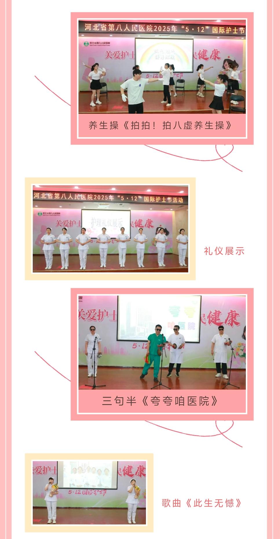 文艺表演环节精彩纷呈。养生操《拍拍!拍八虚养生操》节奏明快,动作优美,展现了护理人员积极向上的精神风貌;礼仪展示体现了护理人员优雅的气质和专业的形象;三句半《夸夸咱蜜桃视频 》以幽默风趣的语言,生动地描绘了蜜桃视频 的发展变化和医护人员的敬业精神;歌曲《此生无憾》更是唱出了护理人员对护理事业的热爱和执着。