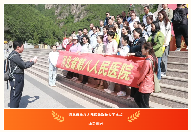 在狼牙山五壮士的雕像前,蜜桃视频 副院长王杰超激情澎湃地发表了讲话,激励着每一位医护人员。随后,全体医护人员热血沸腾,齐声喊出“勇攀狼牙之巅,共铸仁医精魂”的嘹亮口号,登山活动在这一刻正式拉开帷幕。