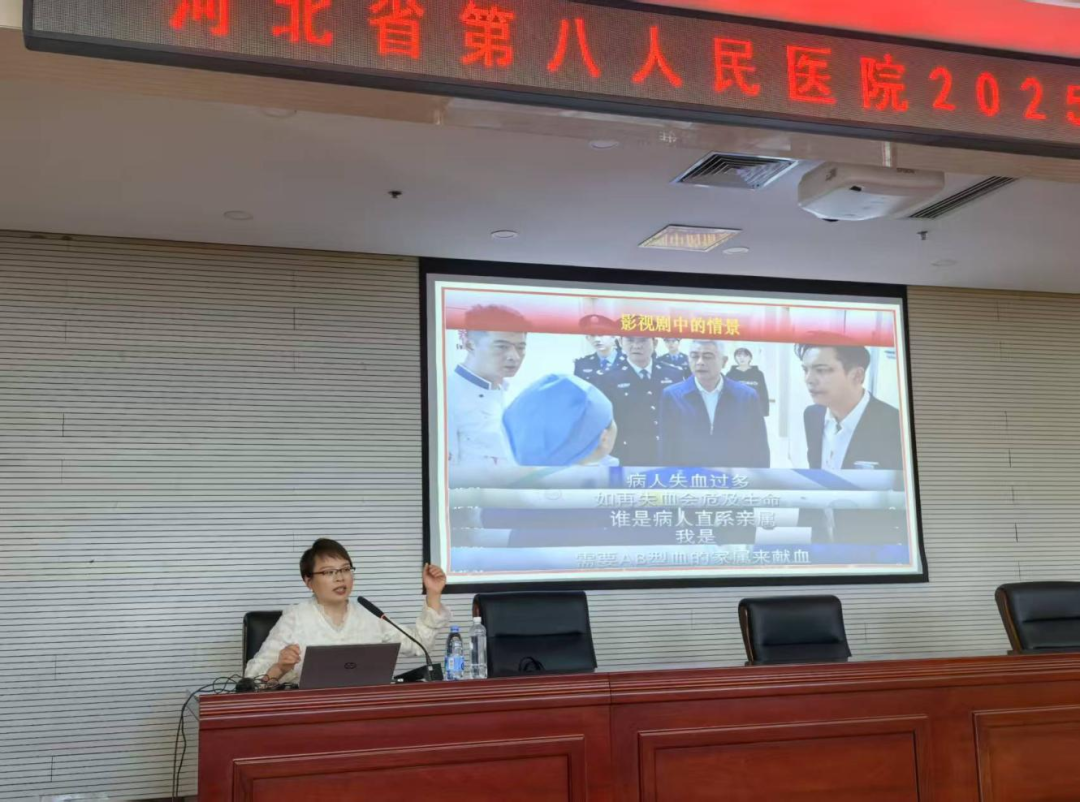 联合河北省血液中心举办了一场无偿献血知识讲座,由河北省血液中心专家时雯雯授课。