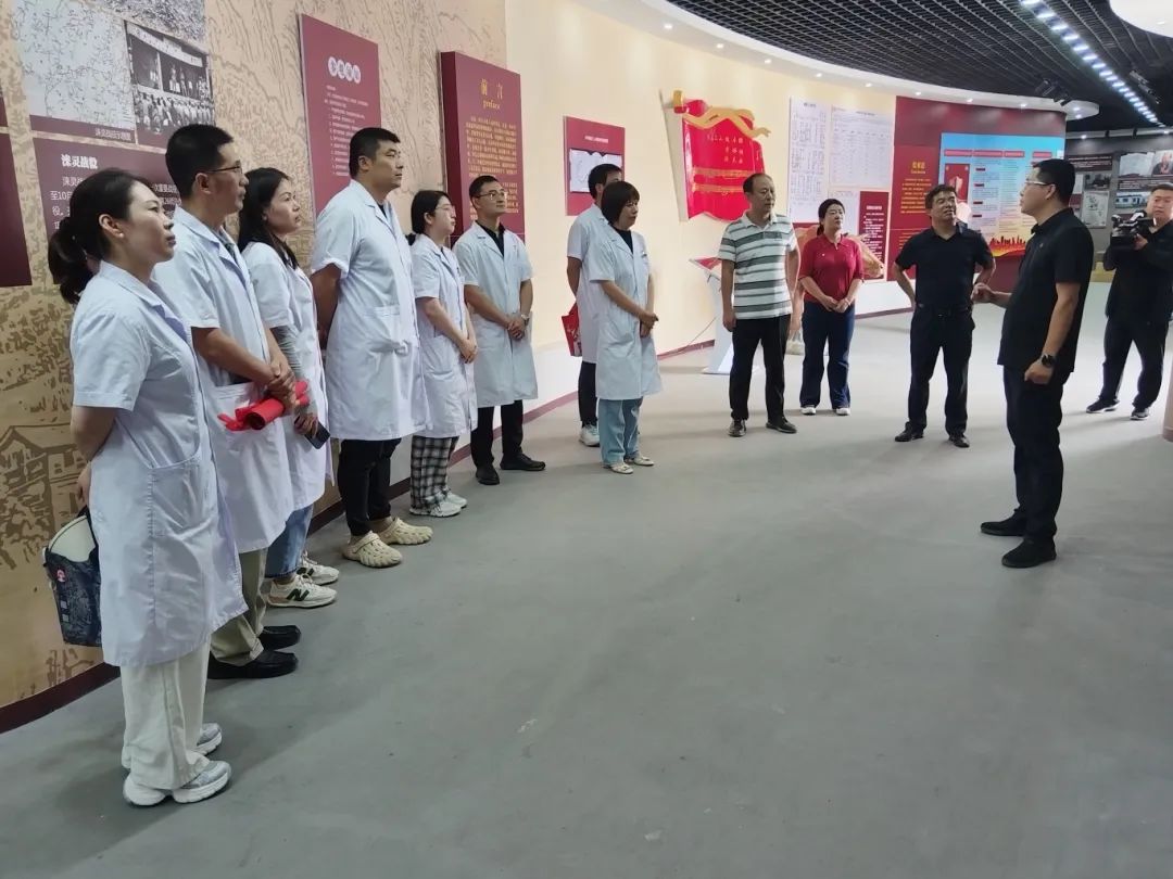 义诊活动结束后,蜜桃视频 副院长索云锡带队,前往位于上庄乡的王二小纪念馆参观学习。上庄乡党委书记张鑫森亲自担任讲解员,深情讲述了抗日小英雄王二小的感人事迹和这片土地上的红色历史。上庄乡党委副书记、乡长吴静一同参观。