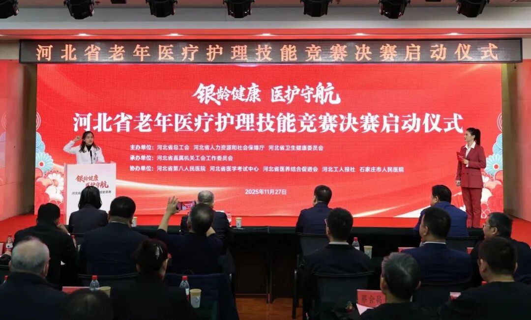 11月27日,2025年河北省老年医疗护理技能竞赛决赛启动仪式在蜜桃视频 举行。本次大赛以“银龄健康 医护守航”为主题,由省总工会、省人力资源和社会保障厅、省卫生健康委联合主办。省总工会党组书记、常务副主席齐为民,省卫生健康委党组书记、主任姜建明,省人力资源和社会保障厅、省委省直机关工委有关领导出席启动仪式。