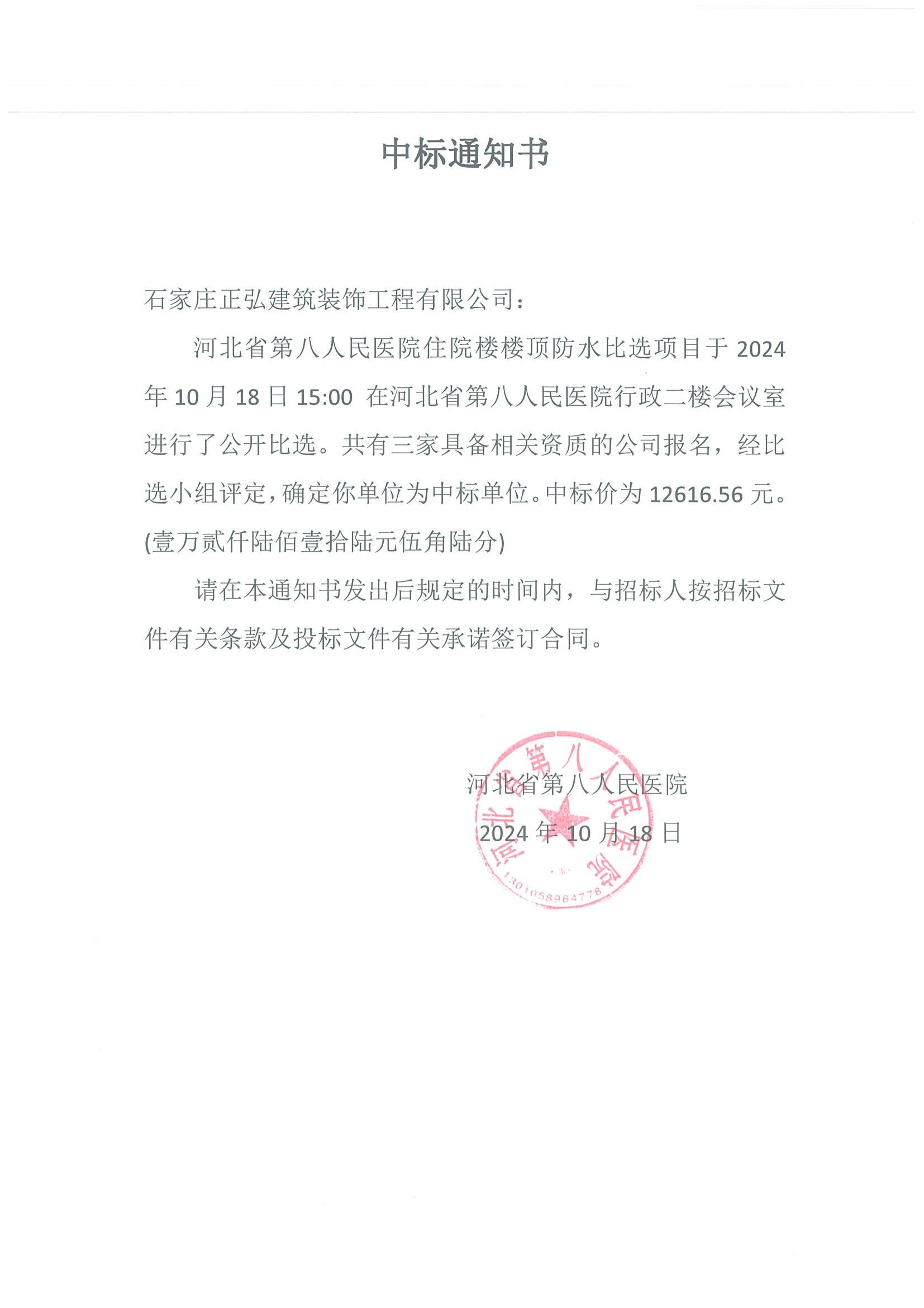 蜜桃视频 住院楼楼顶防水比选项目中标公告