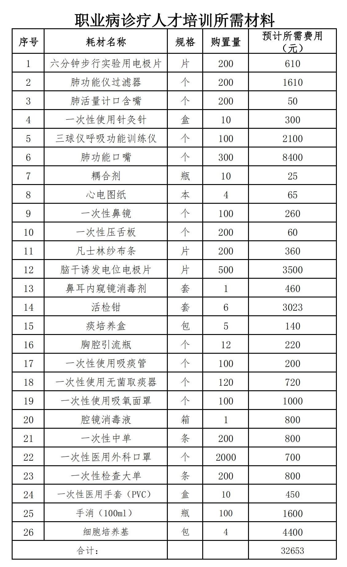 职业病诊疗人才培训所需耗材采购项目比价公告